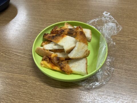 子どもたちが行なった作業は材料の食パンとウインナーのカットです🍞