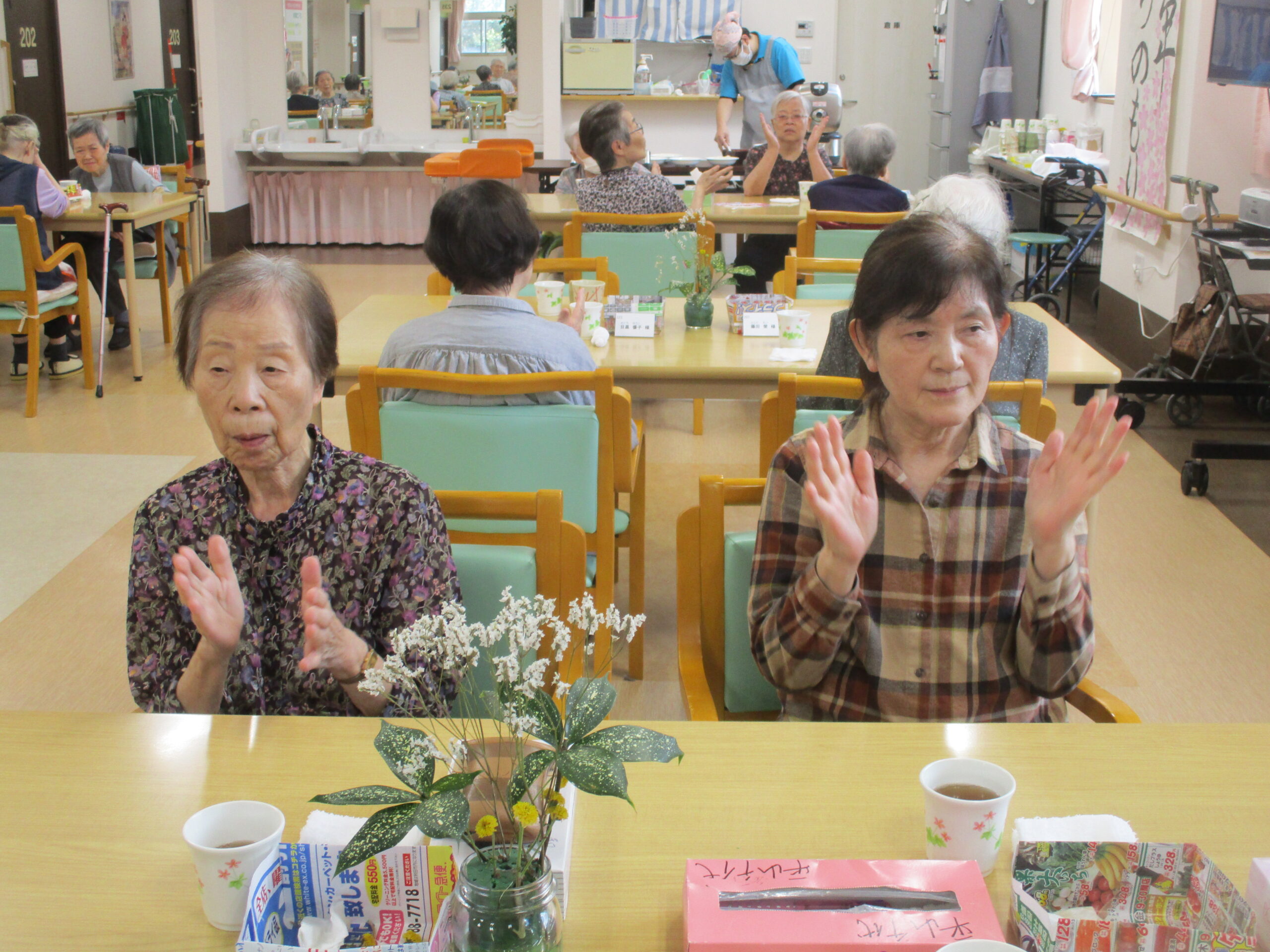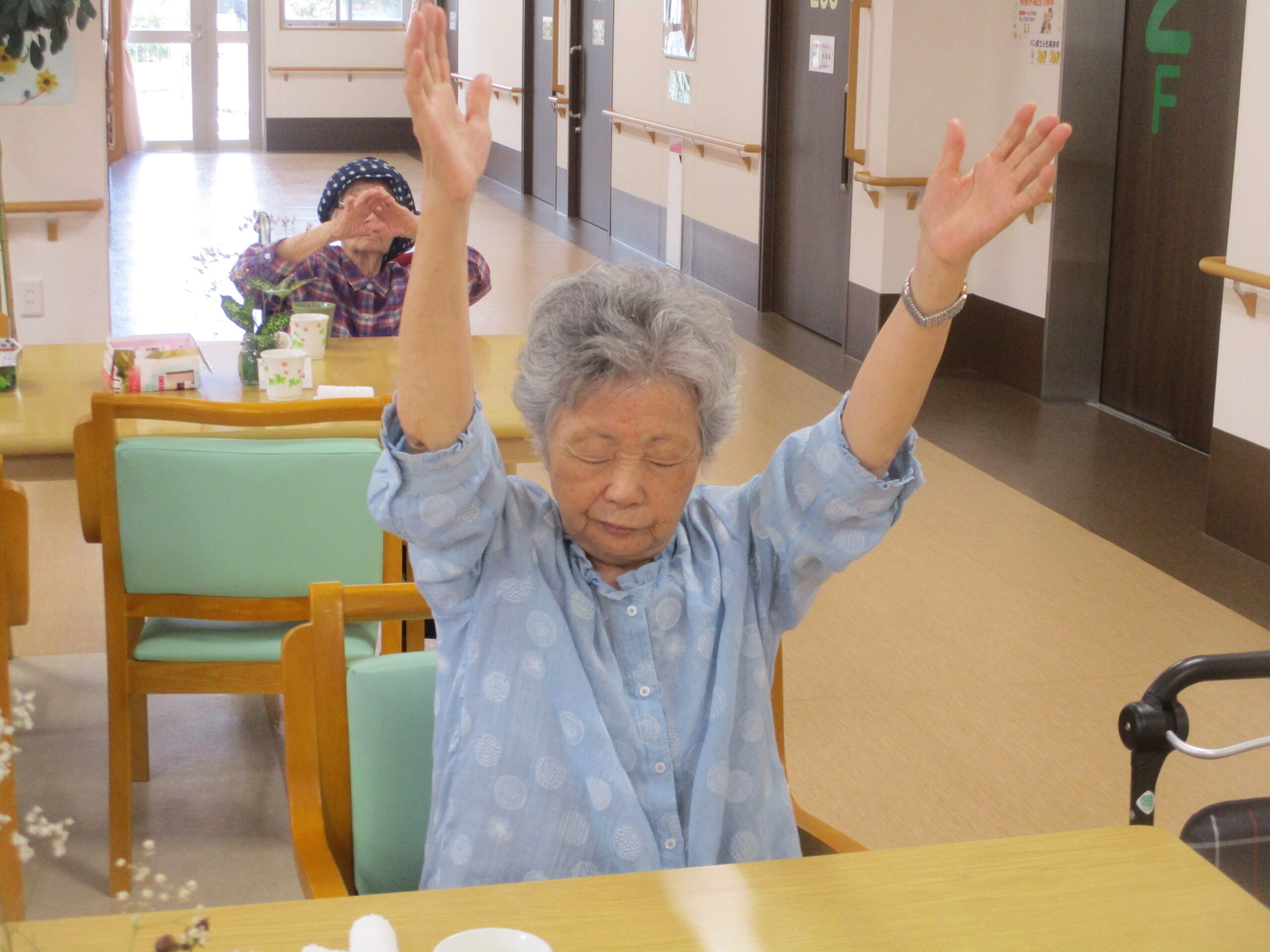 毎日、三食の食事の前には体操を行なっております(^^)/