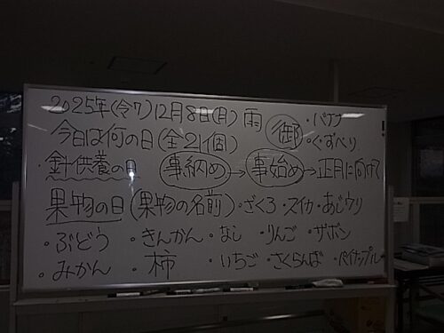 さわやか室蘭弐番館 2階 8日活力朝礼♪ 2025-12-09 2025-12-08 皆様こんにちは♪ 昨日の様子をお届けします 一日のスタートはラジオ体操です 頭の体操は果物の種類お答え頂きました🍎 楽しい一日になります様に☆