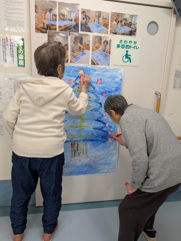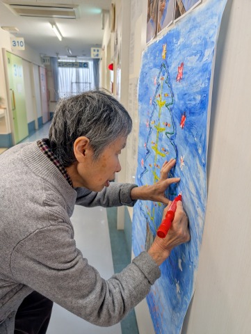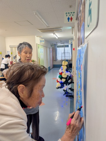 先日のクリスマスツリーの壁飾りに飾りを付け足して下さいました~( ´艸`)♪