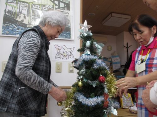 デイサービスでもクリスマスツリーの飾り付けを行いましたので、