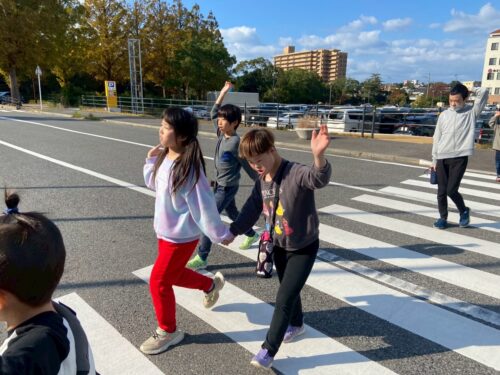 横断歩道は手を上げて✋