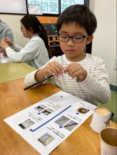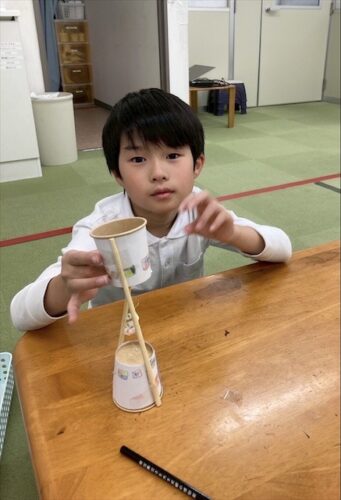 最後に紙コップに箸を貼り付けたら、、