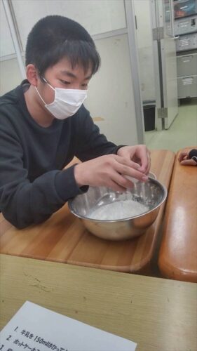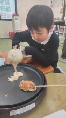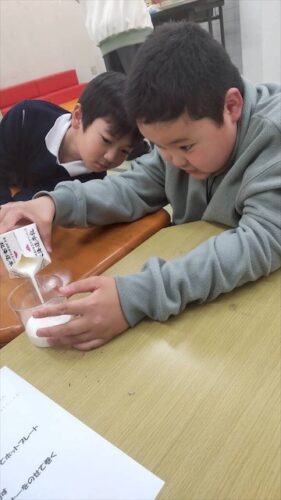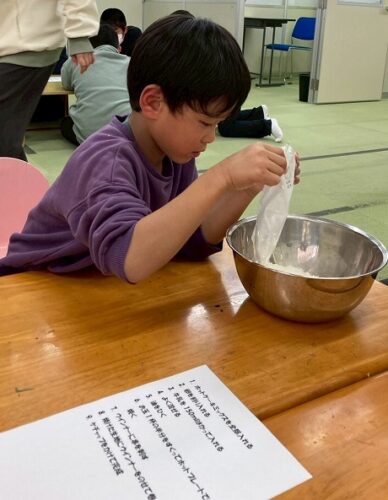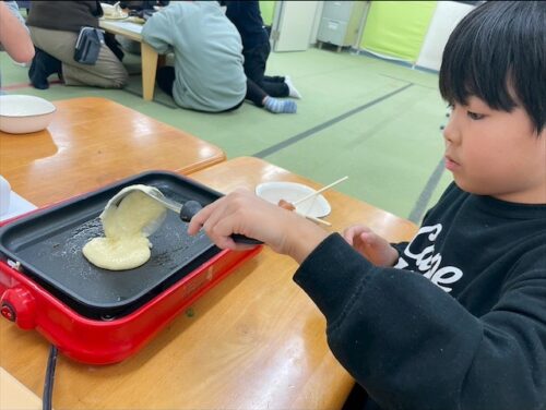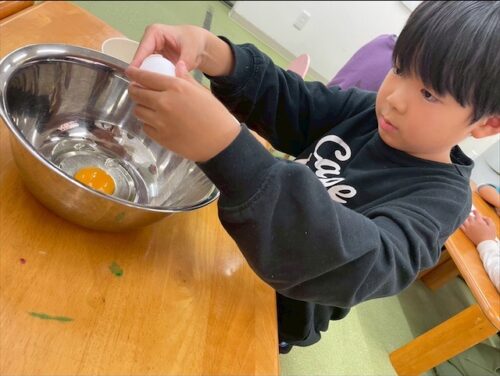 卵を割ったり、牛乳を入れたりホットケーキミックスを入れるなど