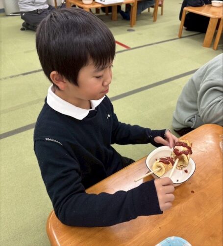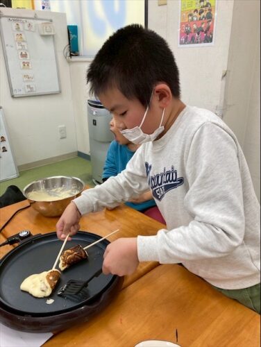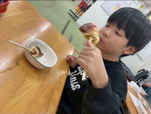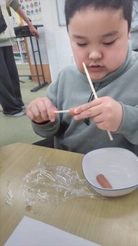 先日おやつレクで焼きアメリカンドッグを作りました😃