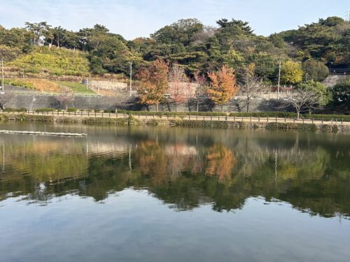 池に紅葉が反射してとても味のある写真を撮る事ができました。ご入居者様も「これはいい。私も撮って子供に見せたい。」と