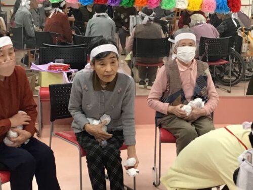 真ん中のカゴめがけて一斉に玉が飛んでいきます。