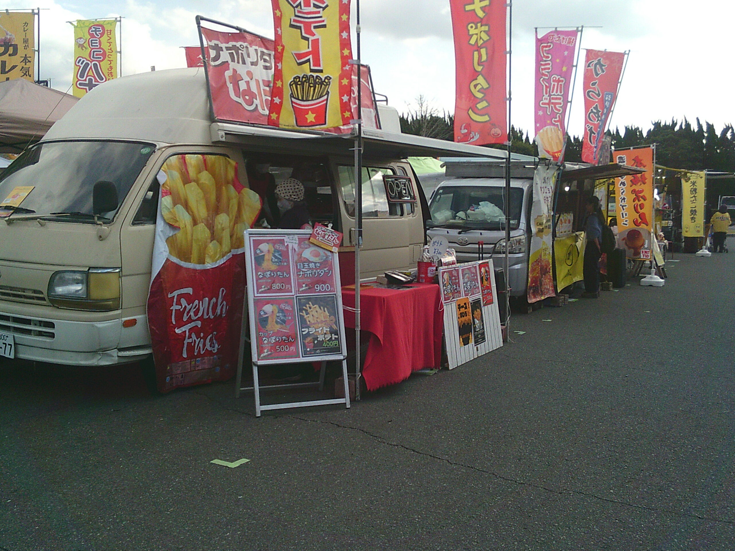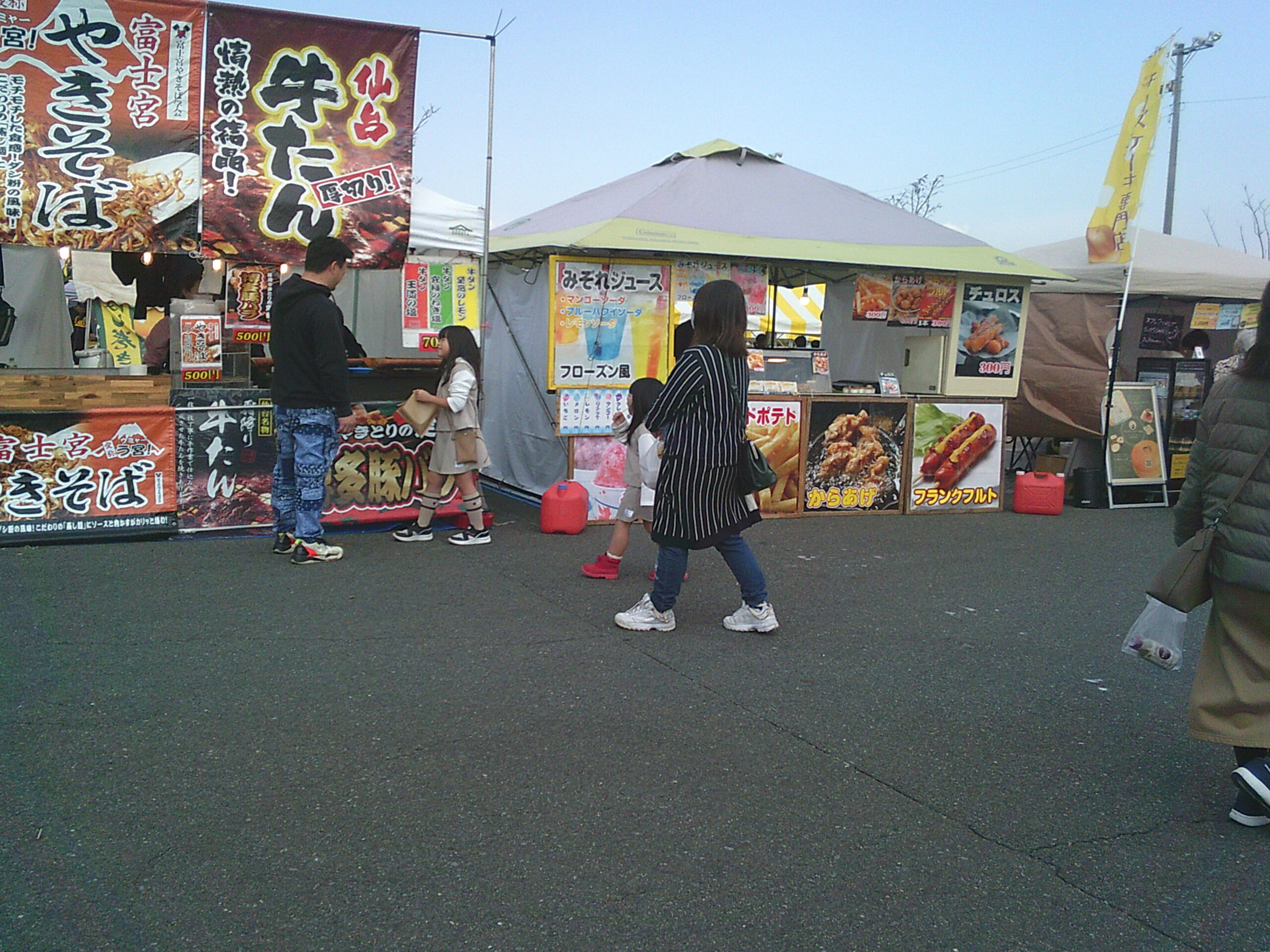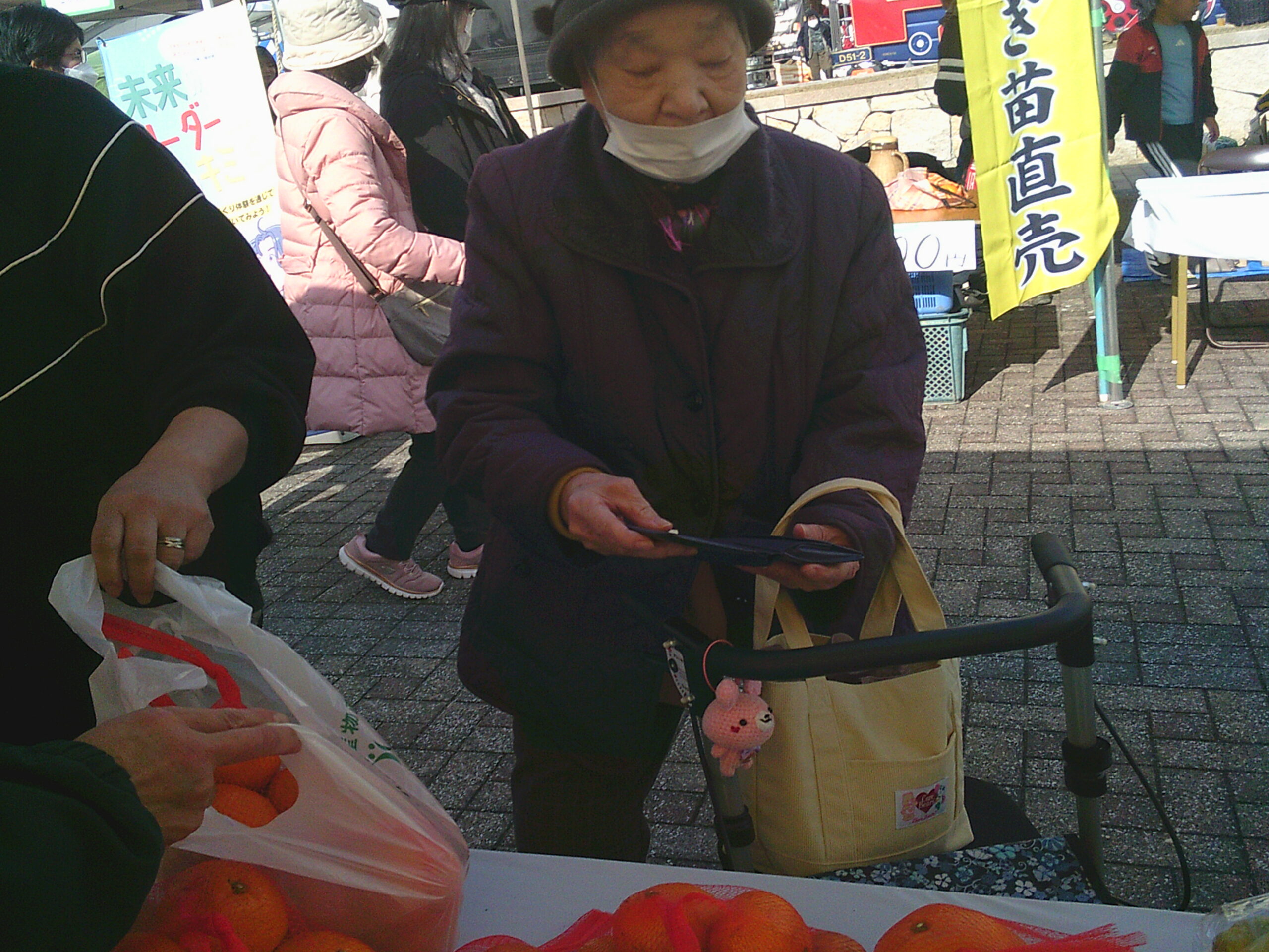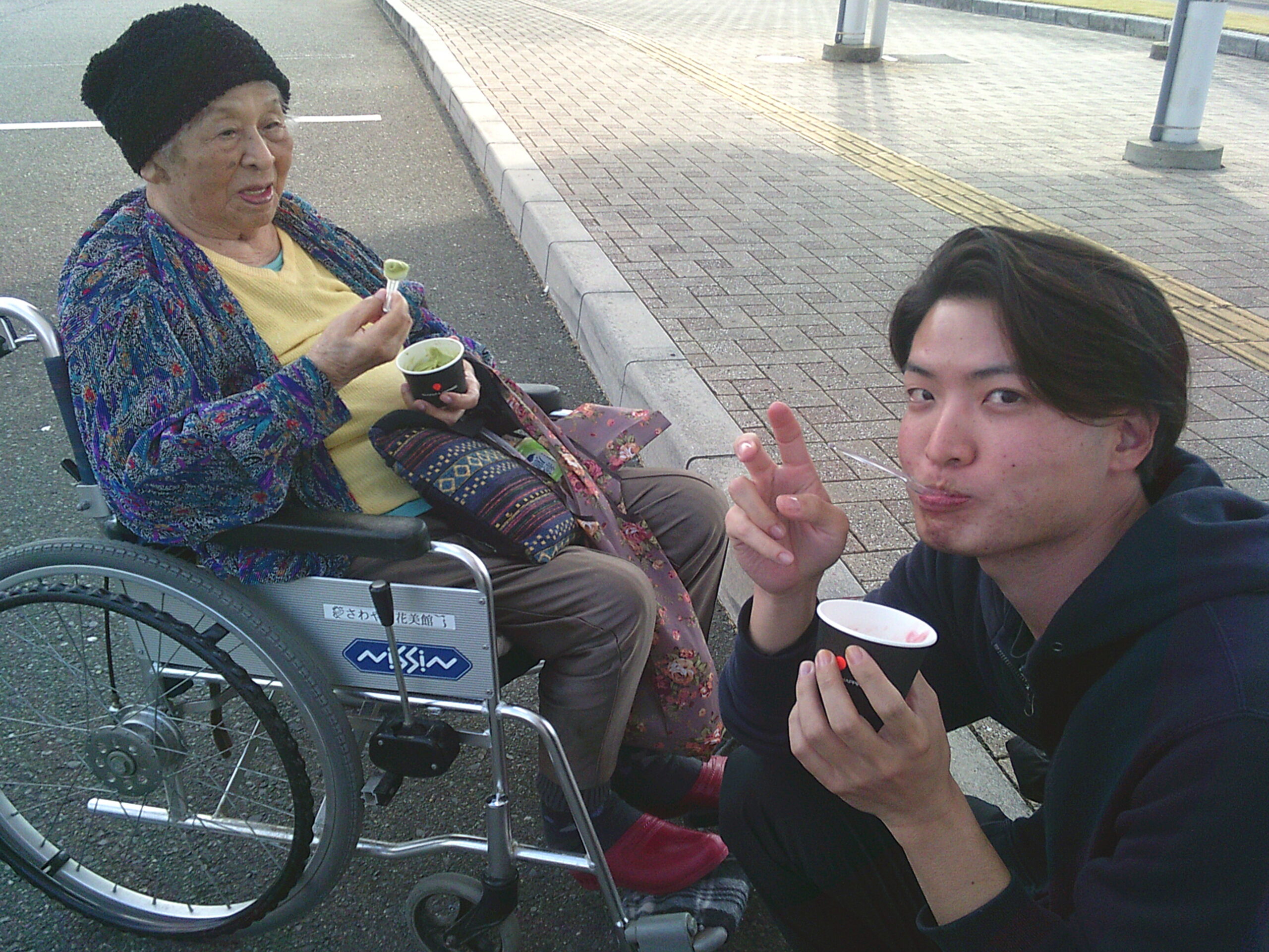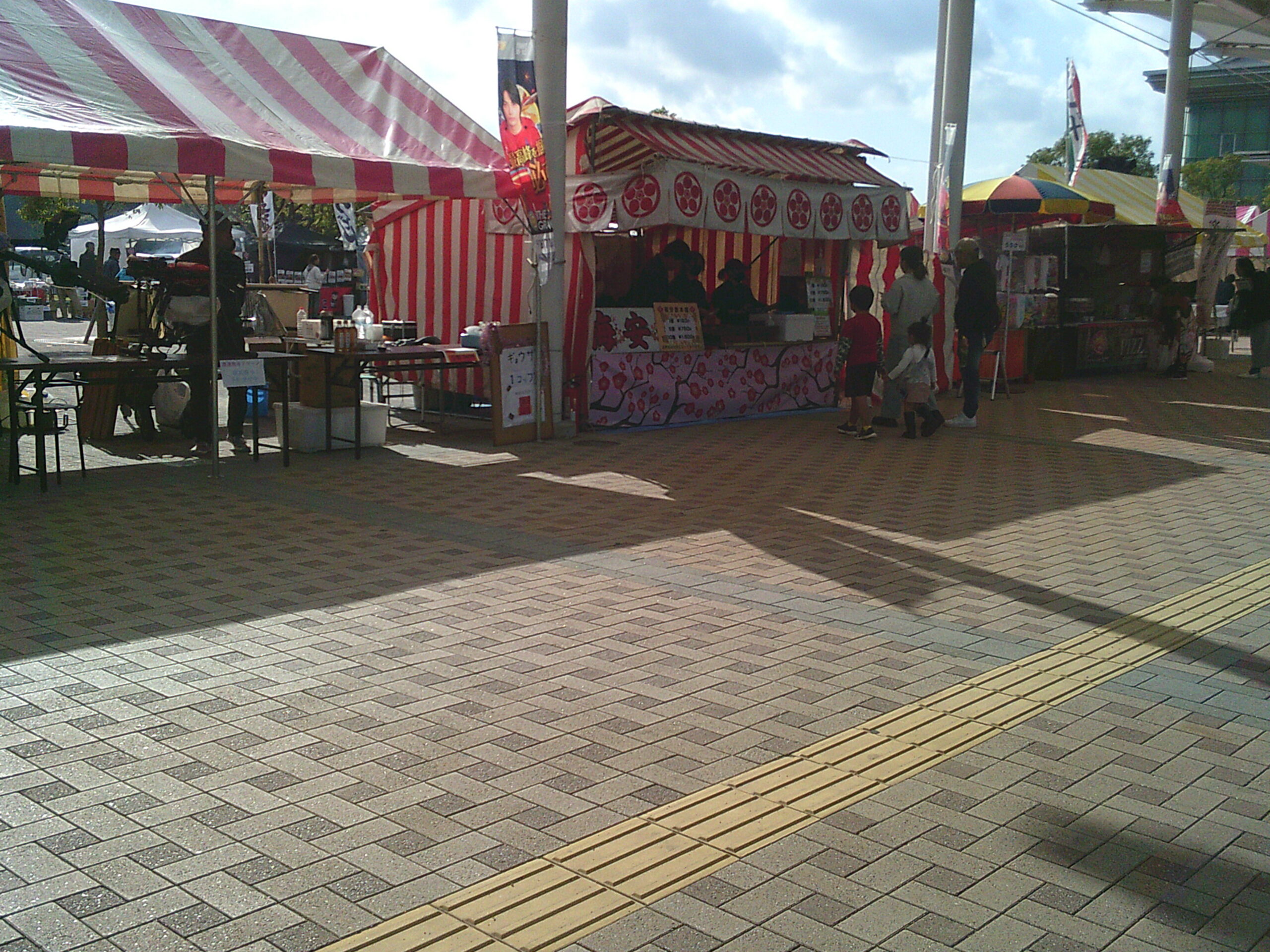快晴で参加客がたくさんいる中で入居者様方と一緒に出店を見てまわり