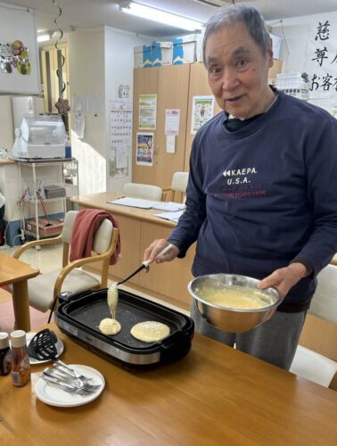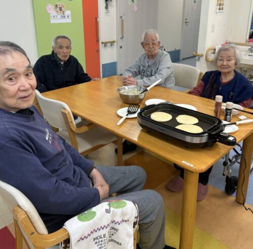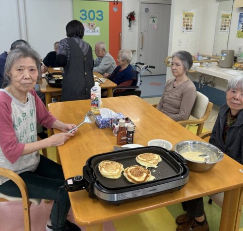 今年最後のおやつレクとなり、何を作るか入居者様方で案を出しホットケーキに決定しました。