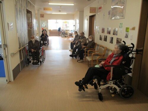 健康管理室で行いますので、その前の廊下でお待ちいただいています😊