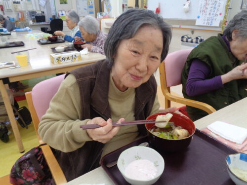 さわやか桜弐番館 今日はきりたんぽ♪ 2025-12-11 2025-12-11 こんにちは💕 さわやか桜弐番館です😄 今日の秋田は大雨☔で、弐番館前の道路は水浸しです😥 今日は3階のきりたんぽ鍋の日デス😁 皆様アツアツのキリタンポを フーフー😚言いながら召し上がっていました💕 心も体も温まりましたね😊 今日の担当は大山でした