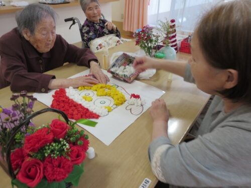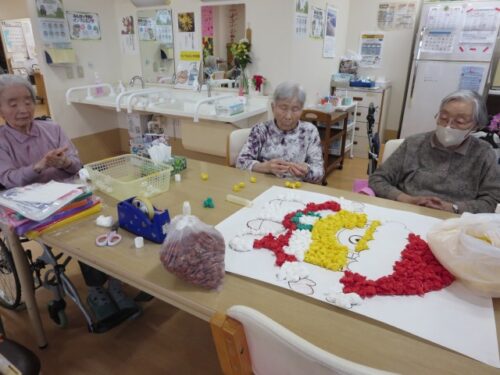 皆でお花紙をコロコロ🎄コロコロ🎅ぺたぺた🎄ぺたぺた🎅