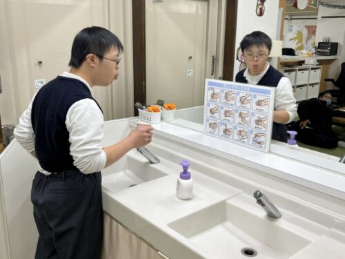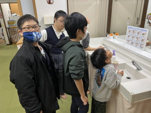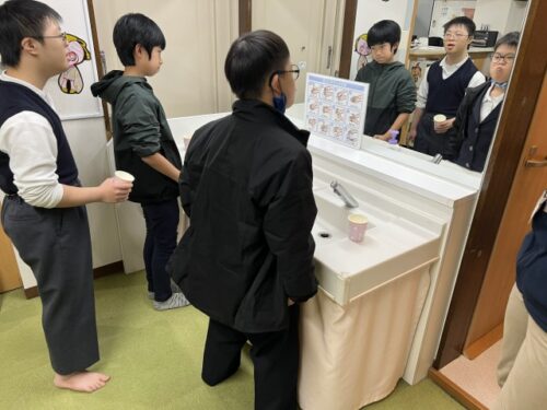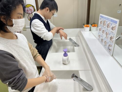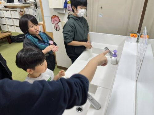 身近でできる対策として手洗い・うがいについて実践を行ないました‼️