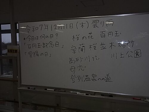 さわやか室蘭弐番館 2階 11日活力朝礼♪ 2025-12-13 2025-12-12 皆様こんにちは♪ 更新が遅くなりました 11日の様子をお届けします ラジオ体操スタートです 頭の体操は花見の名所お答え頂きました 穏やかな一日になります様に☆