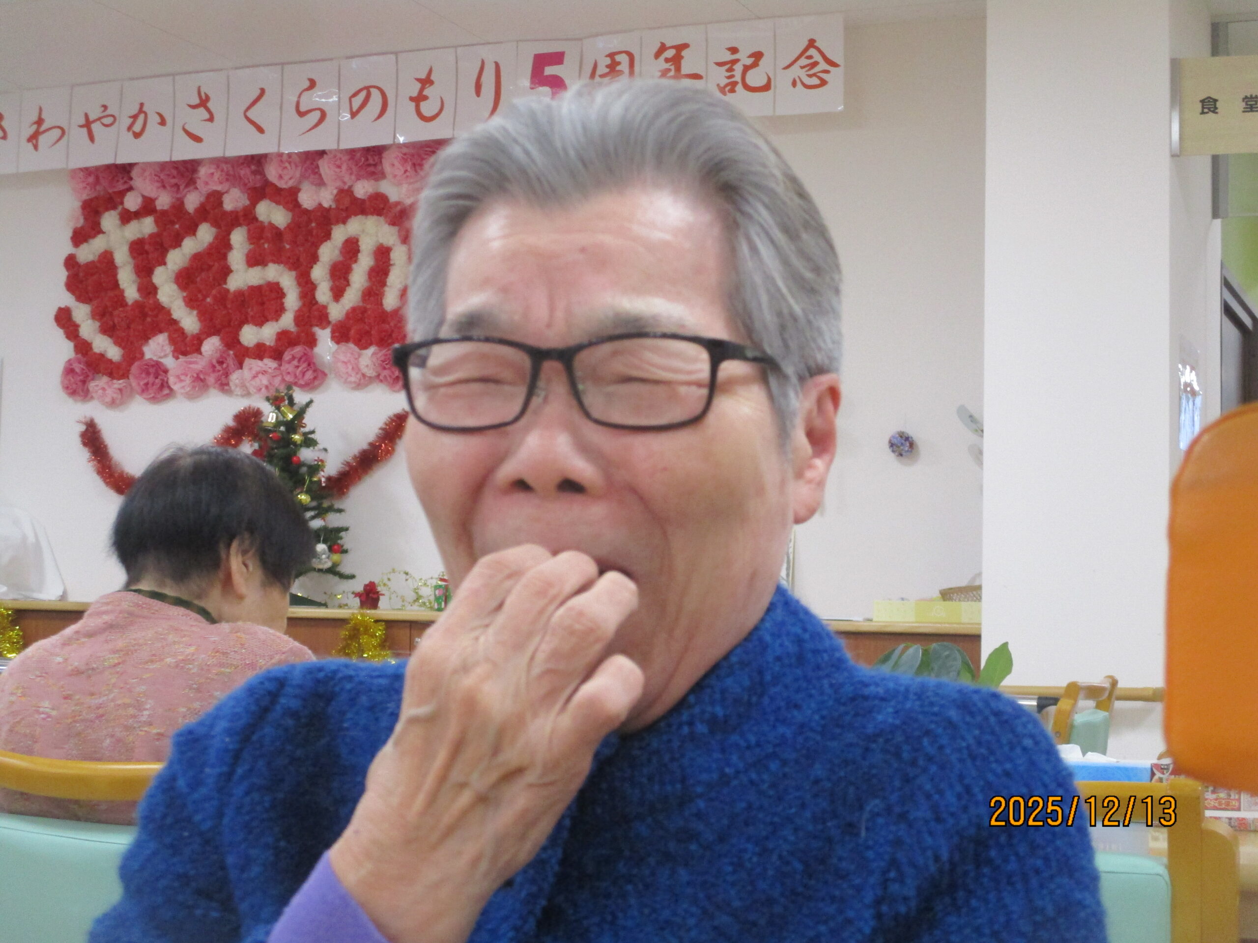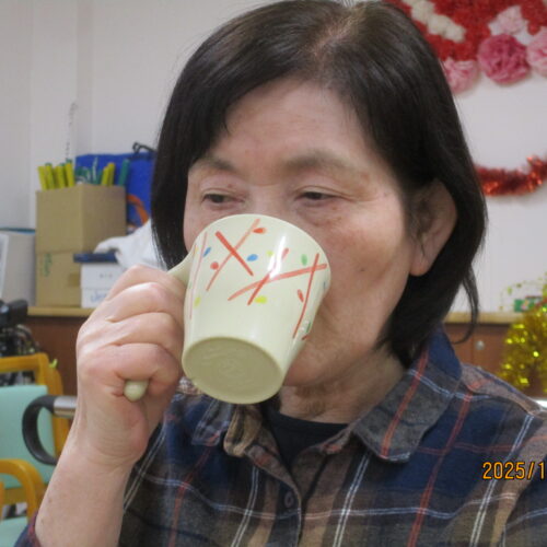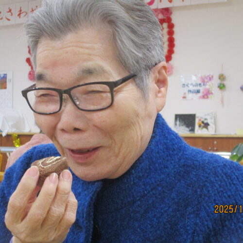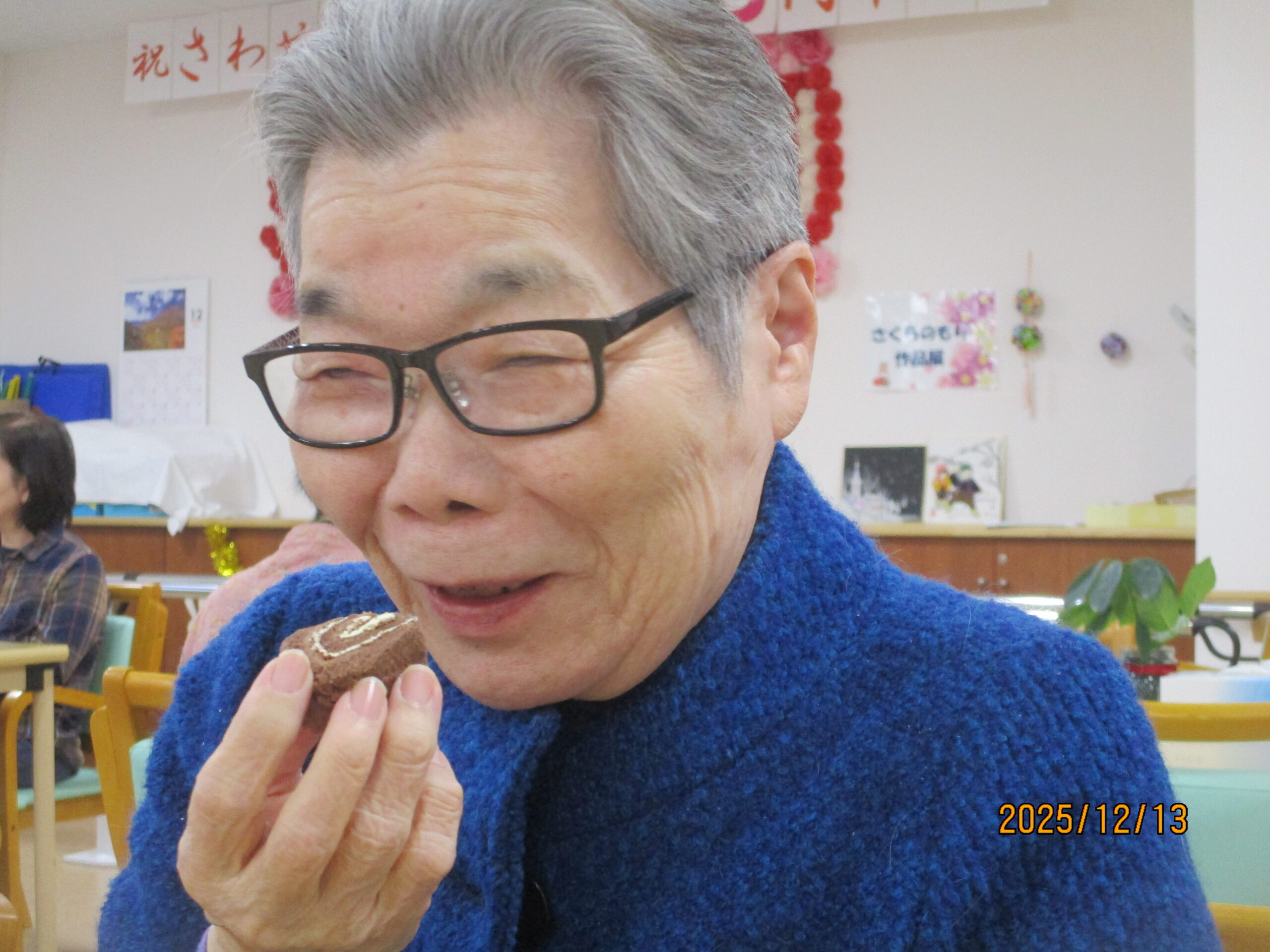 皆さん結構おいしそうに食べておられました。「とても甘くて美味しい。」と笑顔で話されておりました。おやつの他にお茶やコーヒー等飲んで落ち着いて過ごされておりました。本日はおやつの様子でした。明日のブログもお楽しみに。