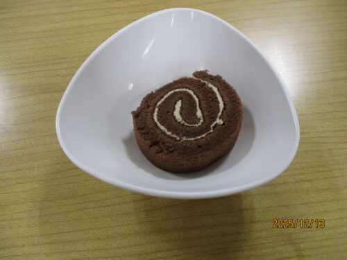 本日のおやつはロールケーキでした。美味しそうですね。食べている写真をたくさん撮りました。