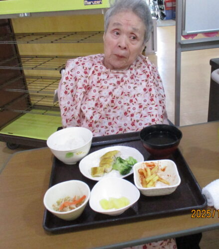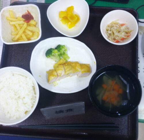 さわやかおおみや館 本日の昼食 2025-12-13 2025-12-13 本日の昼食は タンドリーチキン ポテト もやしのサラダ コンソメスープ、ご飯 フルーツでした。 クリスマスのようなメニューでお肉も柔らかく、美味しくいただきました。 Digital Camera