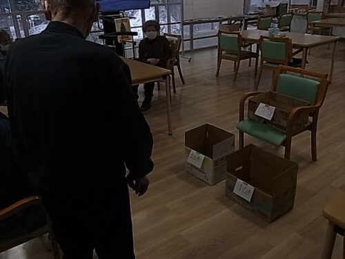 さわやか室蘭弐番館 2階 13日午後の様子♪ 2025-12-15 2025-12-14 皆様こんにちは♪ 更新が遅くなりました 13日午後の様子をお届けします おやつ前に玉入れを楽しみました 3か所の箱を目掛けて 優勝は男性入居者様です おめでとうございます!
