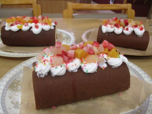 スイスロールにデコレーションしました。フルーツたっぷり💛