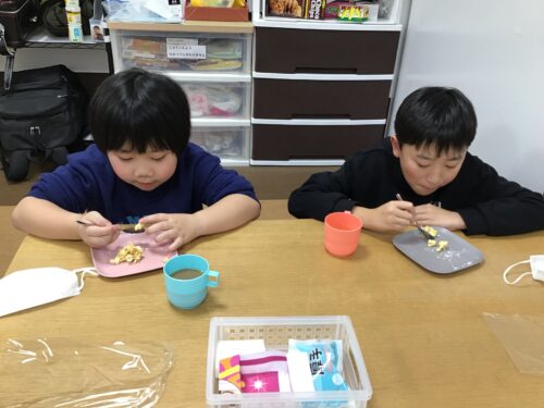 この活動を通して、子どもたちは「形を整える」という手先の繊細な作業を経験し、また「どんな飾りをつけようか」と想像力を働かせる楽しさも学びました。