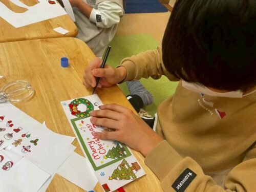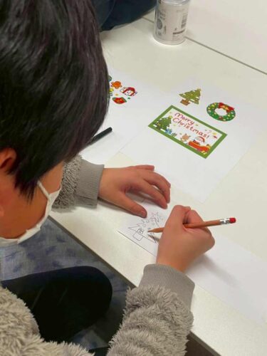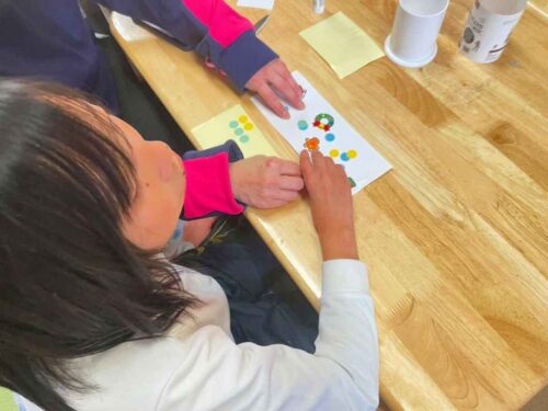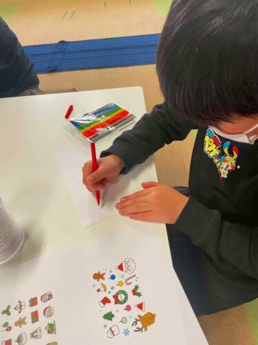 職員さんと一緒にシールで可愛くデコレーション🥰