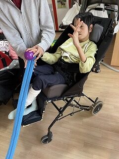 最初は椅子に座って自分でカラーボールを「それ!」と投げて