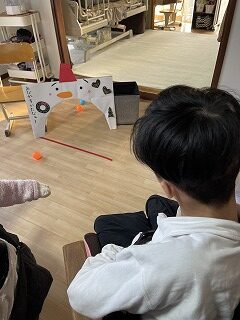 カラーボールボールが雪だるまの口に入ると「やつた!」と喜ぶ様子が見られましたよ☺