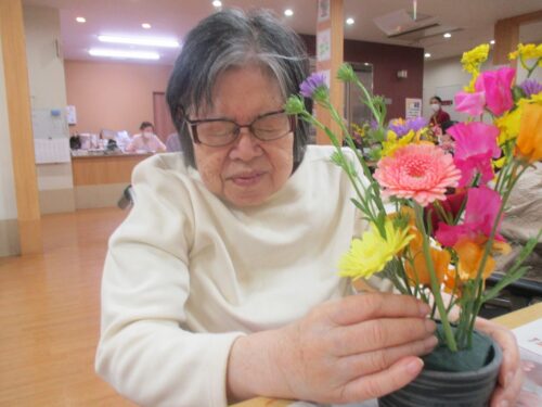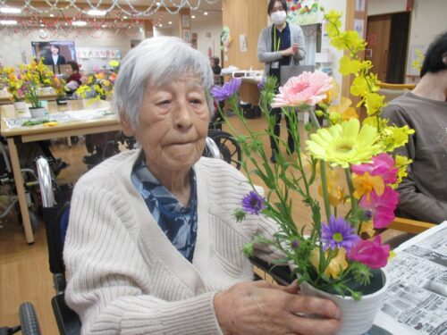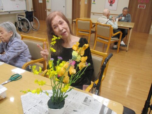 娘が喜ぶから、やるわ(⌒∇⌒)と頑張って活けてくれました。