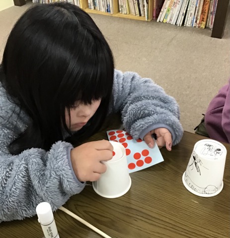 みんなが楽しみながら作った紙コップのゆきだるま⛄