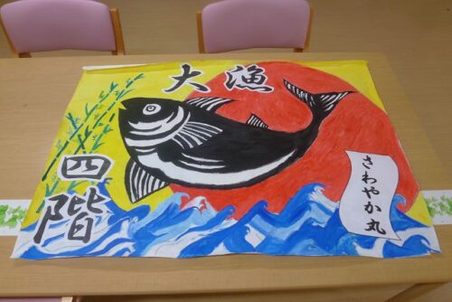 鮪の解体ショーに向けて、入居者様に大漁旗を制作していただきました🏳🌈