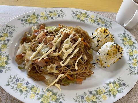 お昼ご飯は「焼きそば」でした。何の変哲もない焼きそばに見えますが、実は、知る人ぞ知る「志麻さんの焼きそば」です。志麻さんとは、あの、カリスマ家政婦の志麻さんです。レシピはネットで検索してください^^ちょっとしたコツでいつもの焼きそばがワンランクアップした味になります!子どもたちも「おいしい!」と言って食べていました。
