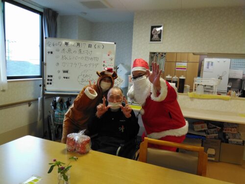 サンタクロースの被り物をスタッフが一生懸命作って準備してくれました🤗