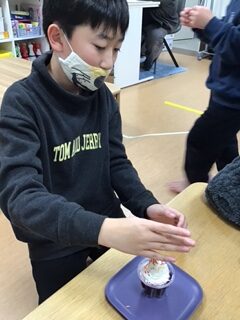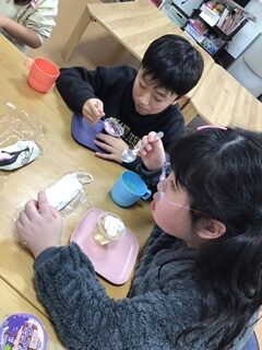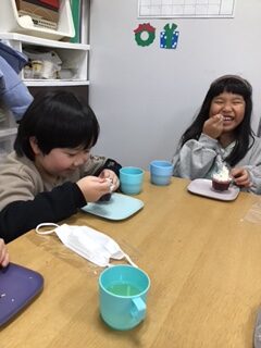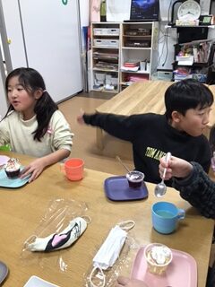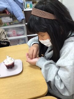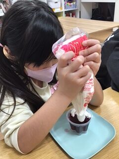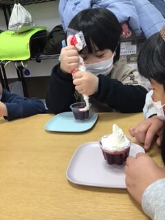 ゼリーをじっと見つめ、一段一段丁寧にクリームを積み上げていく姿がみられました💪☁️