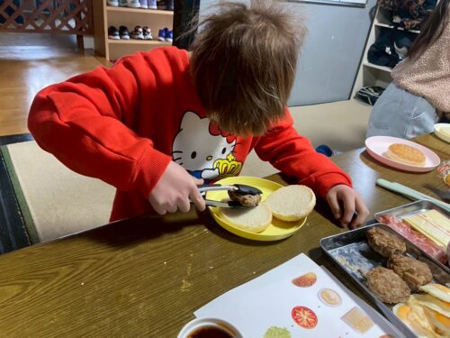 ではハンバーグを乗せていくよ!