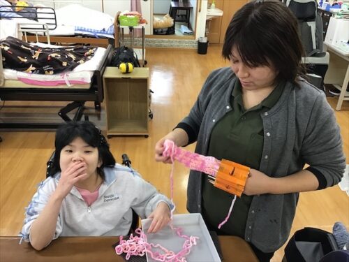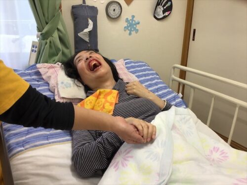手指を使ってYES・NOを伝えて会話を楽しまれています。