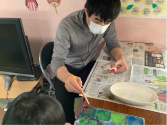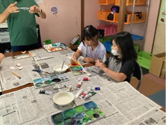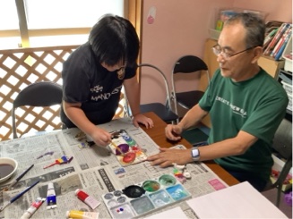 まず色の混ぜ方や組み合わせを教わってから…(•'-'•)