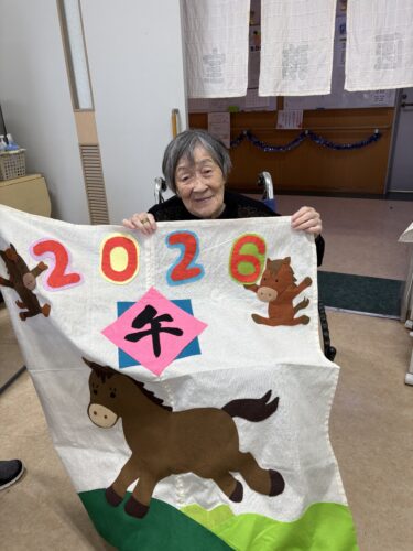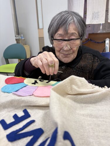 手芸クラブでは来年の干支(午)のタペストリーを手芸部長の