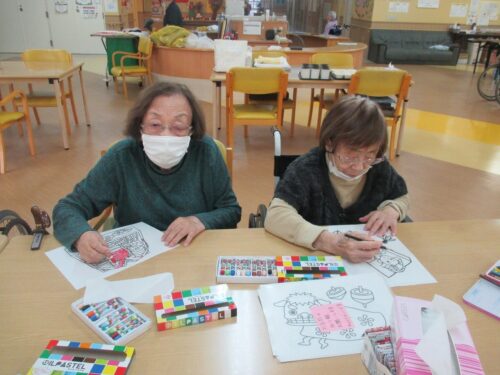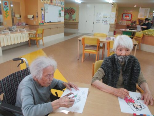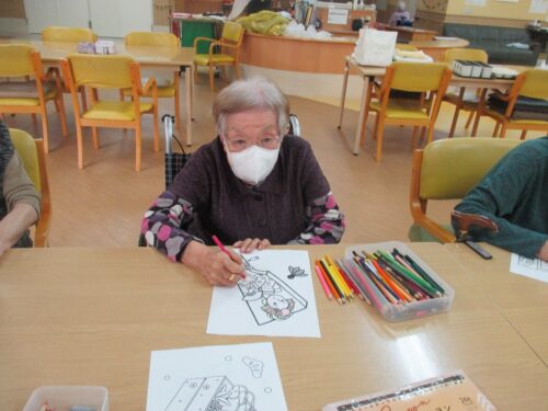 お正月用の飾りとして、ぬりえをされておりました🎍