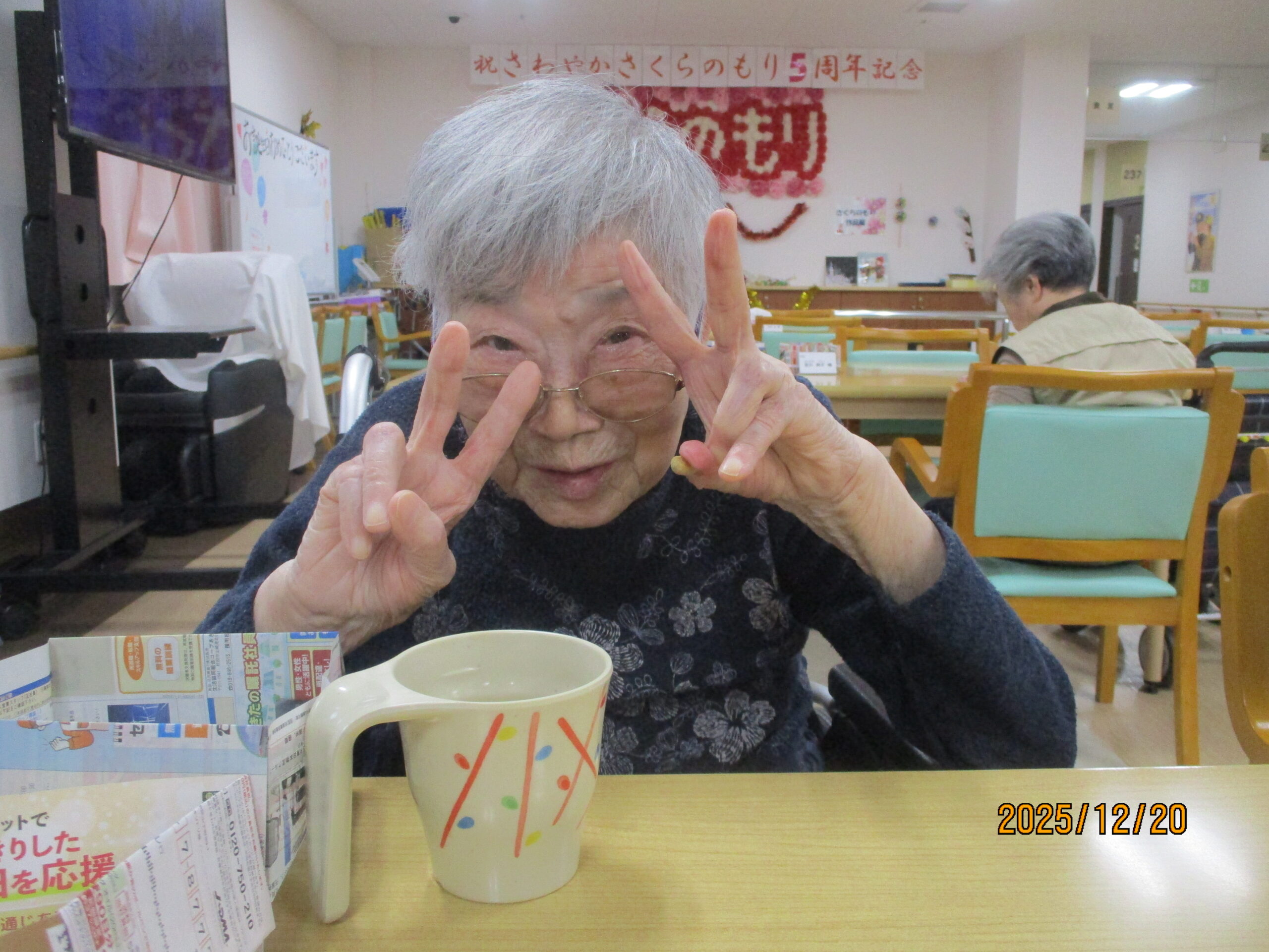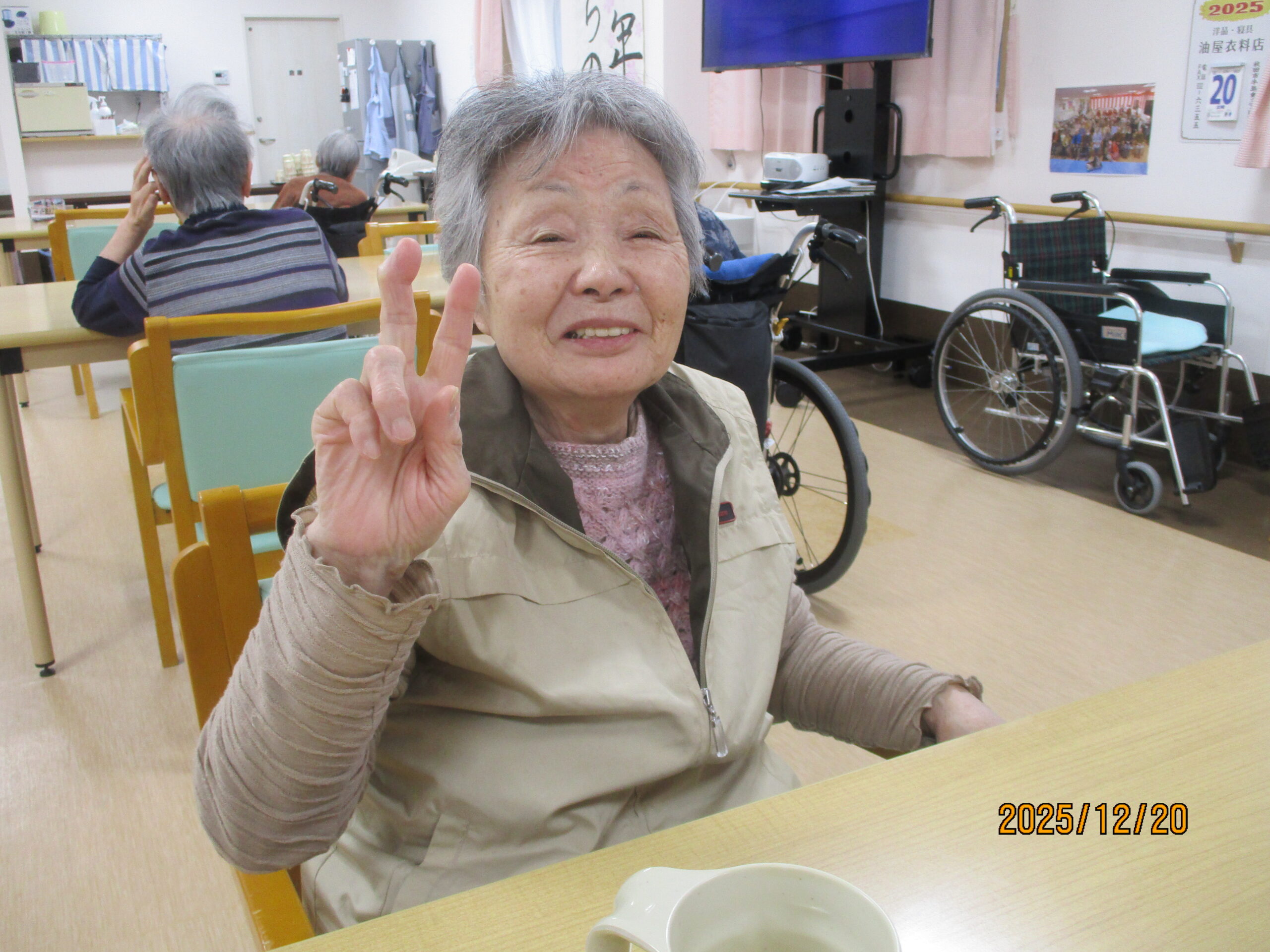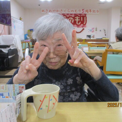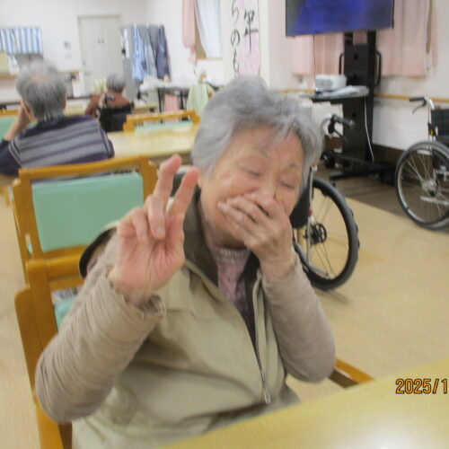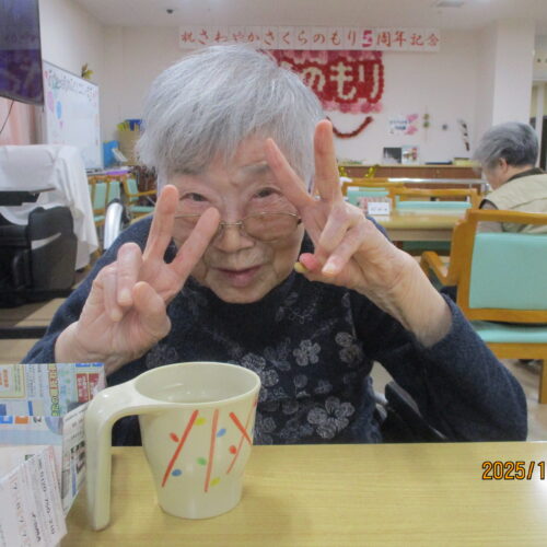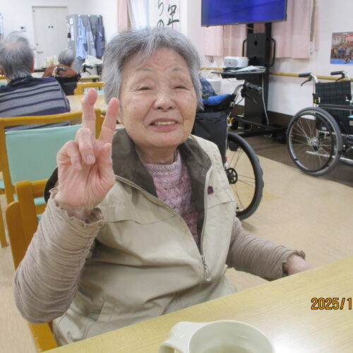 ご入居者様の笑顔で写真撮る時、思いっきり笑ってくれたり、ピースをして楽しまれている様子ありました。ちなみにお茶を飲んでいる様子撮りたかったですけれど残念ながら全部飲んでしまいました。次は飲んでいる姿をお見せできるよう頑張りたいと思います。本日のブログは午後の様子でした。明日のブログもお楽しみに。