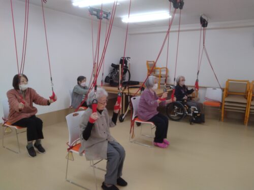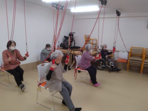 さわやか野方館 レッドコードにて【野方館】 2025-12-20 2025-12-20 ちょっとリハビリの様子を覗き見したいと思います😁 天井から吊り下がってる紐を使って全身運動です😄 これ、結構評判なんですよ🤗 運動後はみなさま、「あー気持ちよかった〜」と とてもリフレッシュするようです😆