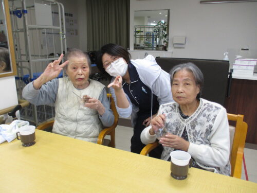 2Fと3Fの入居者様同士、話に花を咲かせています🌸