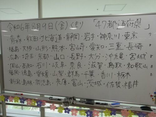 さわやか室蘭弐番館 2階 9日活力朝礼♪ 2024-08-10 2024-08-09 皆様こんにちは♪ 昨日の様子をお届けします 日付の確認後はラジオ体操です 頭の体操は47都道府県お答え頂きました🗾 素敵な一日になります様に☆