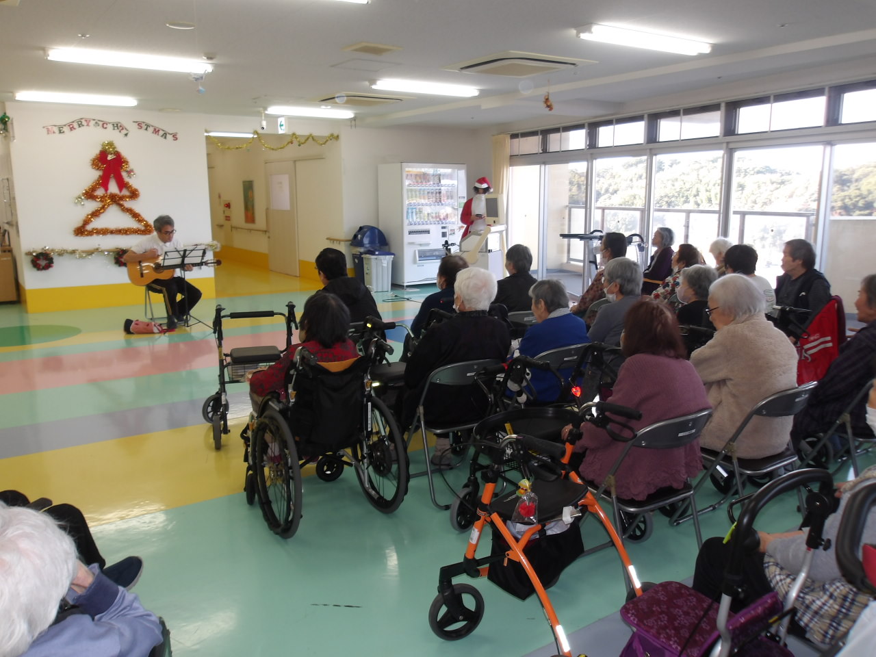 さわやか立花弐番館 さわやか立花弐番館クリスマス会② 2025-12-24 2025-12-21 こんにちはさわやか立花弐番館です。 前回に引き続きクリスマス会の模様をお伝えしたいと思います🎄 職員さんも楽しみにしております。 しっかりカメラ目線でいい笑顔頂きました!😊 思い出歌謡さん(ボランティアさん)によるギターの弾き語り演奏をしました☆彡 利用者様も大満足のご様子でした~(^^♪ 楽しい弾き語り演奏誠にありがとうございました!