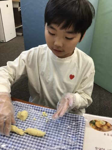 まずは、マッシュ状にしたじゃがいものペーストをナイフを使って均等に切り分ける作業からスタート✨