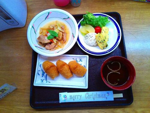 昼食は厨房の方が作ってくれた、クリスマス会用の食事を頂きました🍴