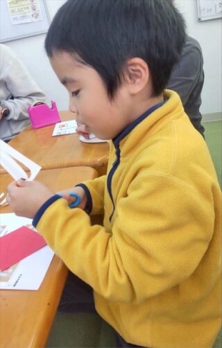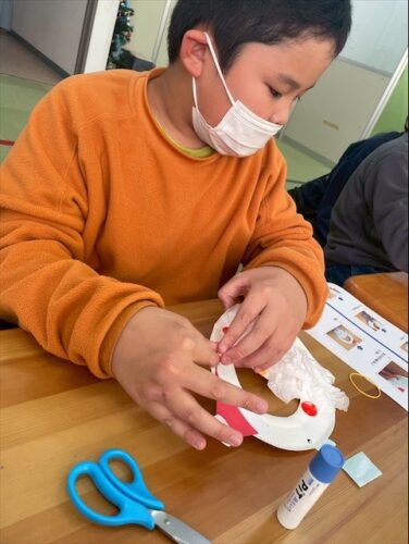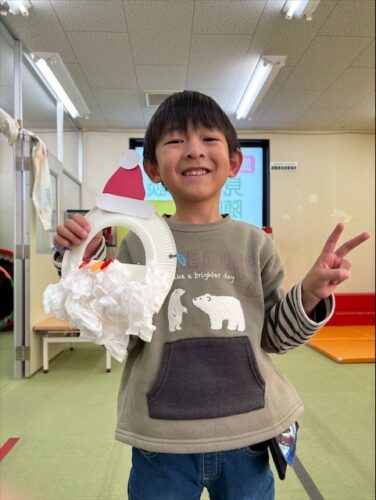 クリスマスにちなみ、サンタのお面を作りました