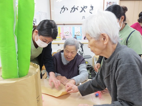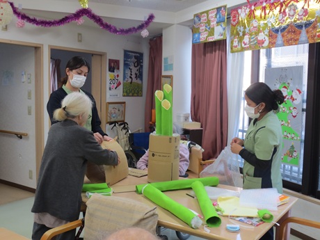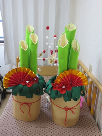 グループホームかがやき ♪ 実習生と一緒に ③門松 ♪ 2025-12-17 2025-12-22 フェルトで、門松作りを、みんなで行いました🎍 3日間かけました、なかなかの出来栄えです、全員の力で、できました🎍 ☆ う す い ☆彡 _(._.)_