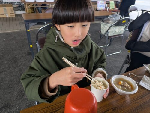温かい豚汁や焼きそば、おにぎりに唐揚げなど