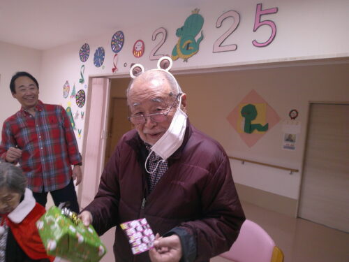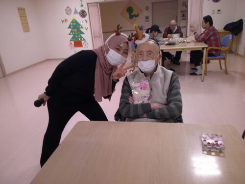 さわやかゆう輝の里 クリスマス会で初めてのビンゴゲーム好評でした。 2025-12-23 2025-12-23 景品を頂いて 中身は何かな? 職員と一緒に 景品はカレンダーでした。 景品は靴下 素敵なクリスマスでした。