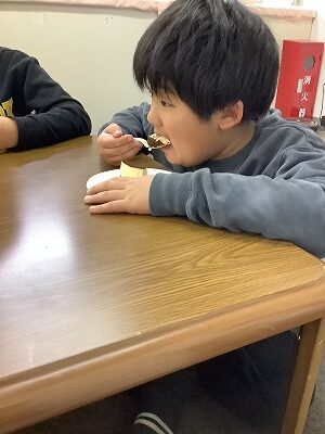 最後はみんなでクリスマスケーキをいただきました🍴 抹茶やチョコ、デコレーションされた可愛いケーキに「どれにしようかな?」と選ぶのも楽しみのひとつ。みんなで囲むおやつタイムは、格別の味だったようです。